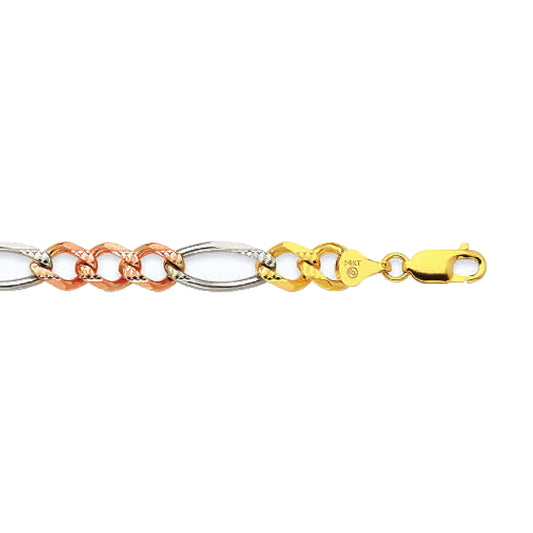 14K 8MM TRICOLOR GOLD SOLID FIGARO CHAIN NECKLACE