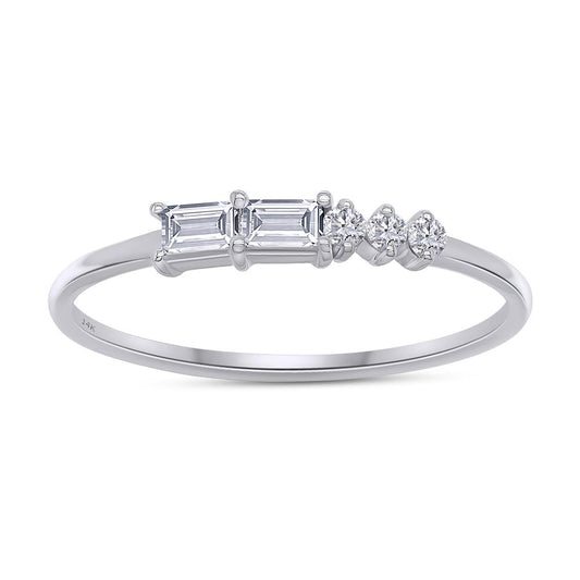 14k Solid Gold 0.16 cttw Baguette And Round Cut IGI Certified Lab Grown Diamond Five Stone Engagement Promise Rings | Dainty Stacking Rings For Women