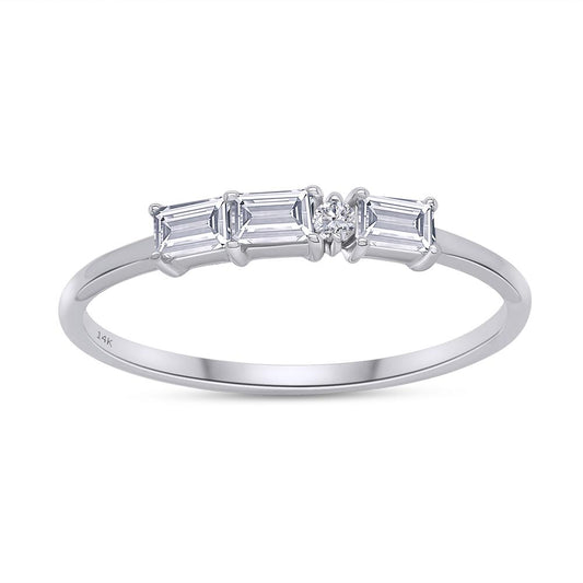 14k Solid Gold 0.20 cttw Baguette And Round Cut IGI Certified Lab Grown Diamond Engagement Promise Rings | Dainty Stacking Rings For Women