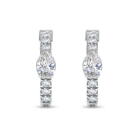 0.80 Cttw Pear and Round Shape Lab Grown Diamond Hidden Snap Post Hoop Earrings In 14K Solid Gold Jewelry