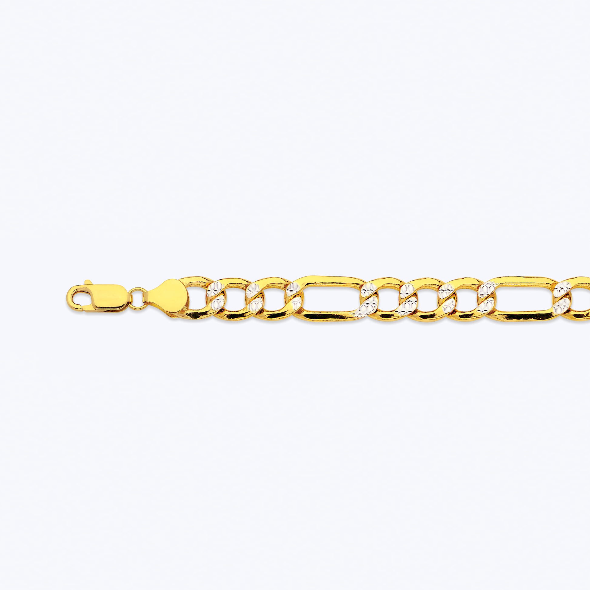 10K 10.5MM YELLOW GOLD HOLLOW PAVE FIGARO BRACELET